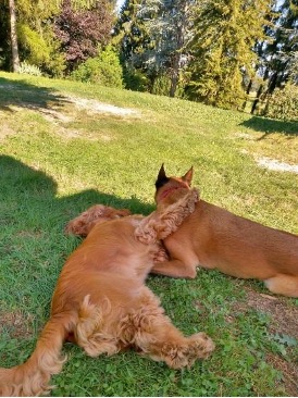 Depuis que notre chien a été chez Patricia, je ne parle pas de pension pour chien, mais de colonie de vacances ! Avec un immense parc ombragé, dodo à l’intérieur… comme un coq en pâte… Avec ses copains Menko et Fidji. Il a un peu boudé pendant deux jours au retour à la maison, au point que je me suis demandée si je ne devais pas prendre un deuxième animal à la maison ! Mais sa joie est vite revenue. Je sais que je n’ai plus qu’à vite repartir en vacances pour faire un heureux.