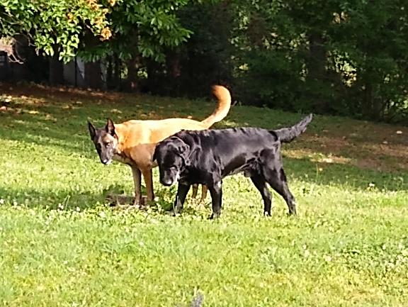 Ils jouent entre eux, avec moi (collection de balles impressionnantes !), creusent, ramènent fièrement des cageots de pommes de pins et de bâtons, courent après les écureuils et les oiseaux (trop rapides pour eux, ouf !)