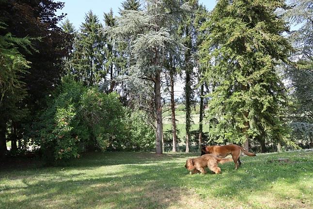 Votre chien profite d’un parc entièrement clos, aménagé, ombragé par des arbres centenaires.