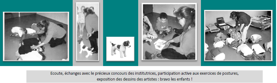 Il s’agit d’interventions en moyennes et grandes sections de maternelle afin d’aborder les bases de la communication canine, l’interprétation des postures et les bonnes attitudes pour le respect de l’animal.